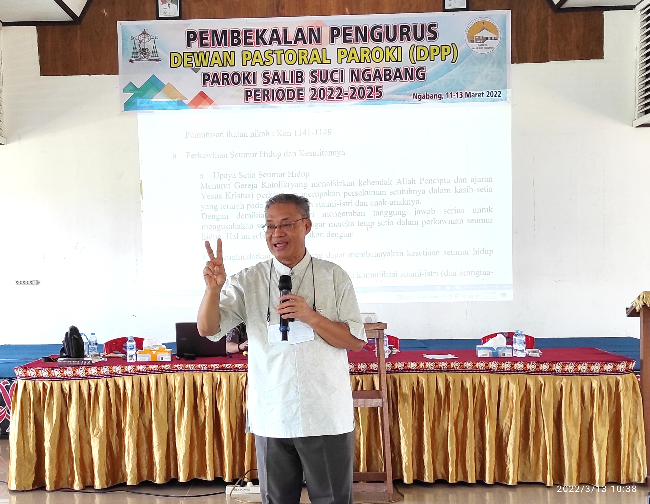 MajalahDUTA.Com, Ngabang – Paroki Salib Suci Ngabang menggelar pembekalan bagi para calon Pengurus Dewan Pastoral Paroki (DPP) Periode 2022-2025 di aula Maniamas Ngabang. Pembekalan dilaksanakan selama 3 hari, dari hari Jumat, 11 Maret 2022 sampai Minggu 13 Maret 2022 dan diikuti oleh para calon Anggota DPP, Pastor Paroki dan Para Suster KFS Ngabang.