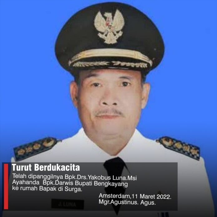 “Turut berduka yg mendalam serta berdoa atas telah dipanggilnya Bpk.Drs.Yakobus Luna.Msi Ayahanda Bpk.Darwis Bupati Bengkayang ke rumah Bapak di surga. Doa saya juga utk keluarga besar yg ditinggalkan, agar tetap teguh dalam iman menerima kenyataan ini. Amsterdam, 11 Maret 2022,” oleh Mgr. Agustinus. Agus.