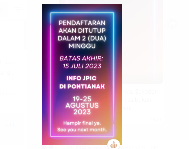 MajalahDUTA.Com, Pontianak, 2 Juli 2023 – Ketua Justice, Peace, and Integration of Creation (JPIC) Kalimantan, Pastor Pionius Hendi OFMCap, mengirimkan pengingat penting kepada semua peserta melalui grup chat WhatsApp INFO JPIC. Pengingat tersebut menyoroti pentingnya mendaftar untuk mengikuti kegiatan yang akan diselenggarakan pada 19-25 Agustus 2023 mendatang.