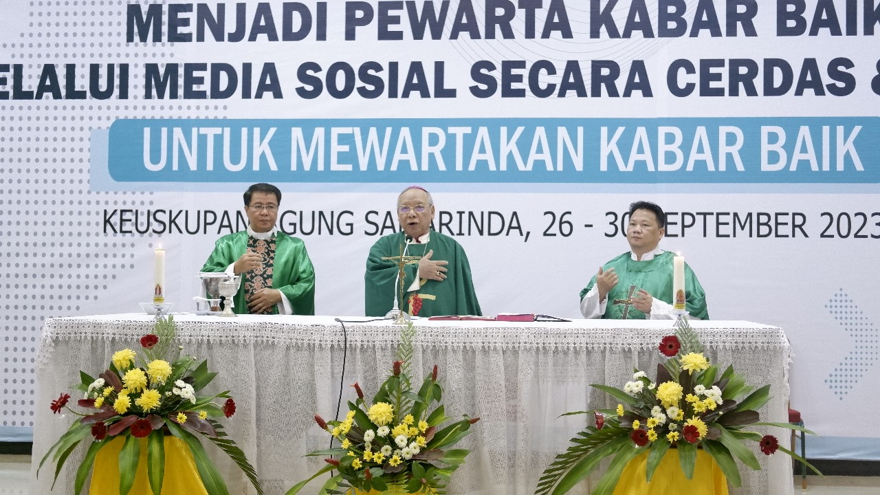 Dalam homilinya, Uskup Yustinus mengajak semua peserta untuk menjalani pelatihan dan berlatih literasi di era digital saat ini dengan sukacita dan semangat.