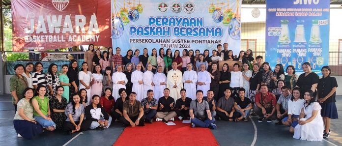 Kalimat tersebut tentunya akrab ditelingga kita, sebab penggalan kalimat ini merupakan lirik lagu yang terdapat dalam buku lagu Madah Bakti yang dinyanyikan pada masa paskah. Lirik lagu ini menghantar kita pada iman yang dapat kita syukuri dan kita banggakan sebab Yesus adalah batu yang telah dibuang orang, kini menjadi batu penjuru ( Kis 4:11-12), Yesus yang dianggap oleh musuh-musuh-Nya menjadi penghalang bagi kekuasaan dan penghujat Allah, padahal sesungguhnya Yesus adalah pewarta kabar baik dan keselamatan, telah disiksa dan dibunuh tergantung pada salib, dimakamkan, dan pada hari ketiga bangkit dengan mulia, menjadi penyelamat dan penebus bagi dosa-dosa manusia. Ungkapan iman dan rasa syukur atas pengorbanan Yesus yang menyelamatkan dirayakan dalam Perayaan Ekaristi oleh warga persekolahan suster (TK, SD, SMP) Pontianak pada tanggal 5 April 2024, Pk. 15.00 Wib, di aula persekolahan Suster.