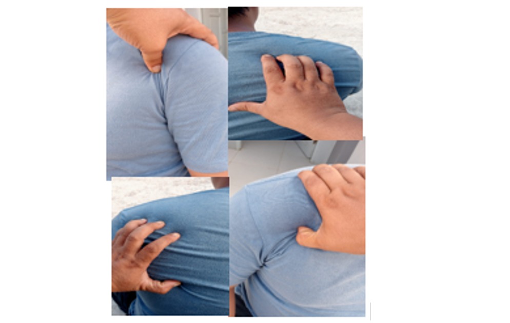 Keterangan pasien sangat jelas bahwa gangguan terjadi pada bahu dan lengan mengalami rasa sakit.