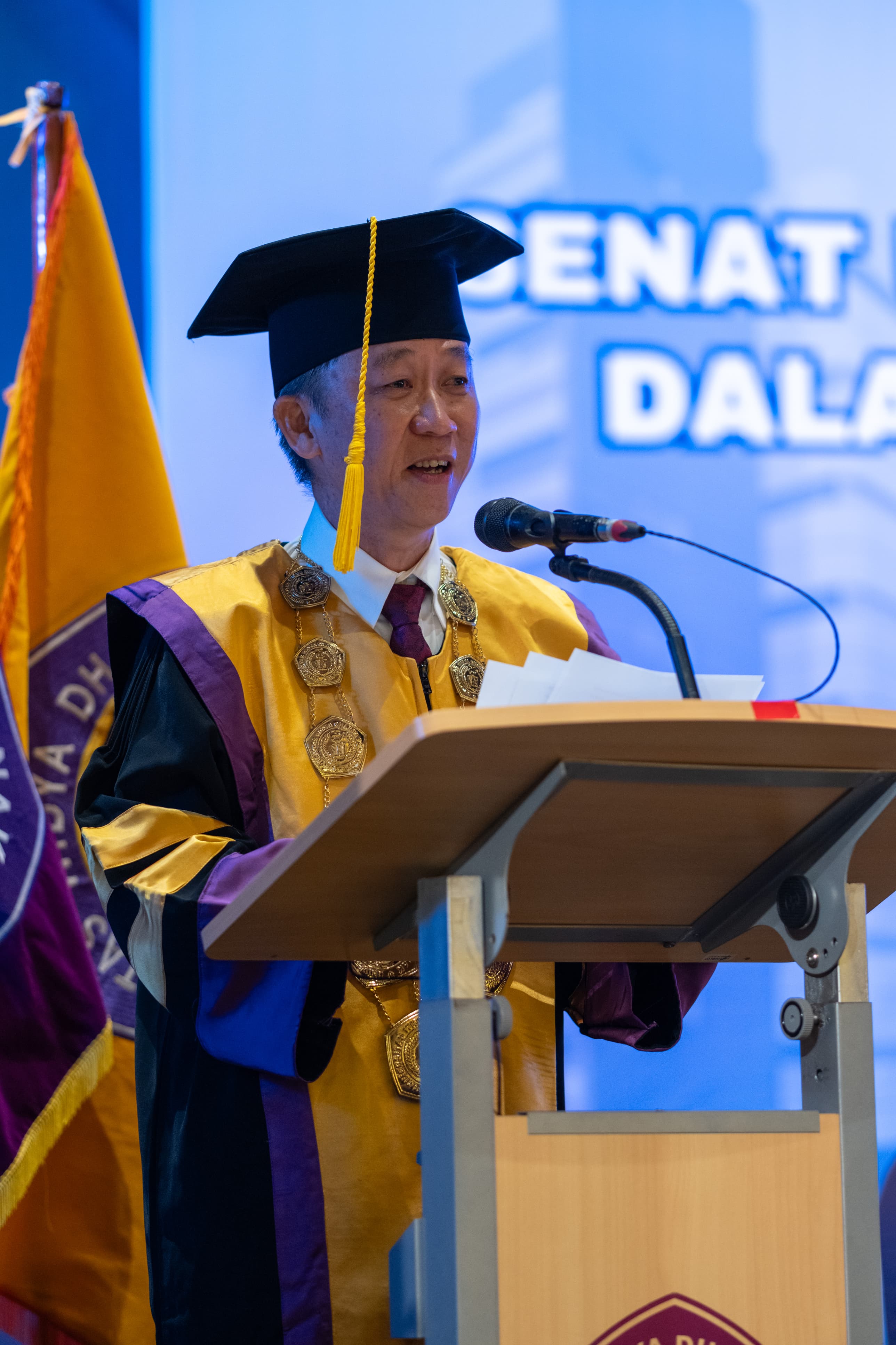 Polycarpus Widjaja Tandra, S.H., M.M., Ketua Yayasan Widya Dharma, dalam sambutannya mengingatkan pentingnya motto UWDP, Non scholae sed vitae discimus, yang berarti “kita belajar bukan hanya untuk sekolah, tetapi untuk hidup.”