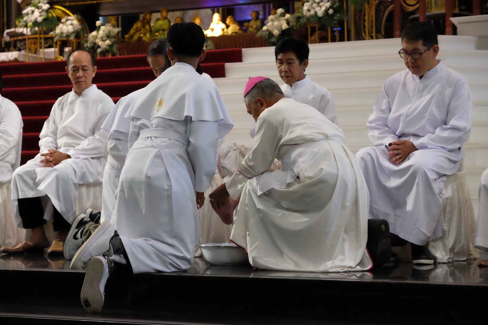 Misa Kamis Putih malam itu dilanjutkan dengan ritus pembasuhan kaki, sebagai simbol pelayanan dan kerendahan hati — pesan utama dari perjamuan malam terakhir.