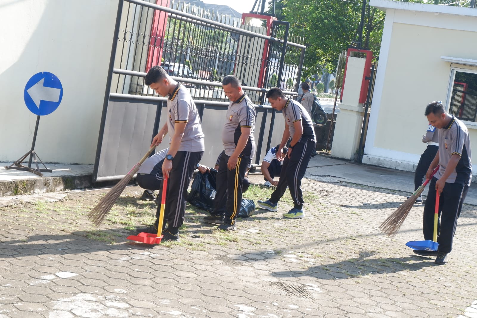 Kegiatan ini melibatkan personel dari Satbinmas, Sabhara, Brimob, serta tokoh-tokoh agama dan masyarakat sekitar. Mereka secara bergotong royong melakukan bersih-bersih halaman, mencabut rumput liar, menyapu, dan merapikan fasilitas ibadah.