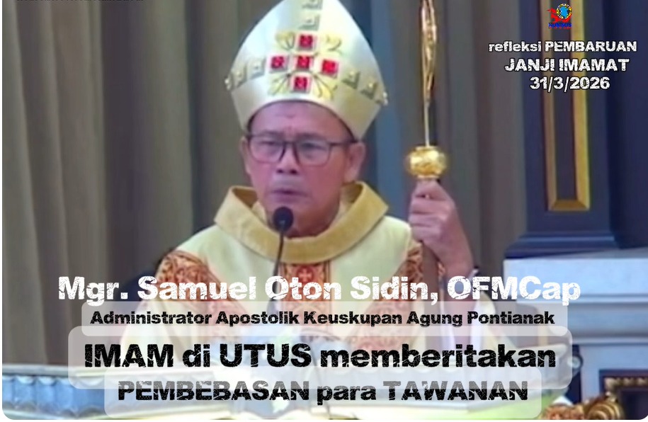 DUTA, Pontianak – Dalam Refleksi Pembaharuan Janji Imamat yang berlangsung pada 31 Maret 2026 di Gereja Katedral Santo Yoseph Pontianak, Administrator Apostolik Keuskupan Agung Pontianak, Mgr. Samuel Oton Sidin, menegaskan kembali panggilan dasar para imam sebagai pewarta pembebasan bagi umat di tengah kompleksitas kehidupan modern.